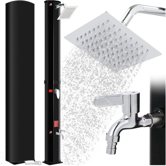H 225cm Solar Powered Freestanding 40L Outdoor 360° Shower head and Footwash Spout,Temperature Controlled up to 60°C,with cover