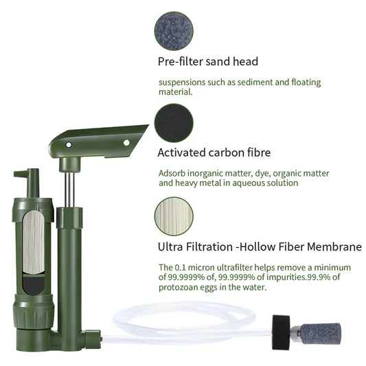 Hand Pump Water Filter: For camping, hiking, and survival situations.